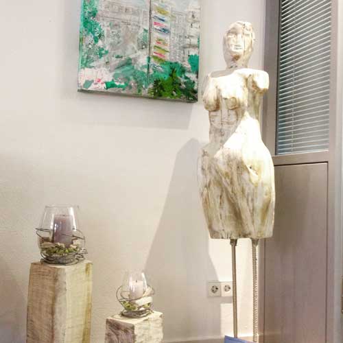 In den schönen, hellen Räumen der Hardtwaldsiedlung Karlsruhe wird dauerhaft eine wechselnde Auswahl aktueller Arbeiten von Carola Kadenbach ausgestellt.